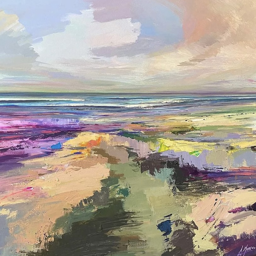 Andres Moreno lives and works in southern Spain. Studied art in the University of Tenerife. Then completing his studies in Granada where he achieved a bachelor’s degree in art. His art presents us with a style and expressive force in his contemporary paintings, which has a base in abstraction, the horizon line is predominant in all his work.