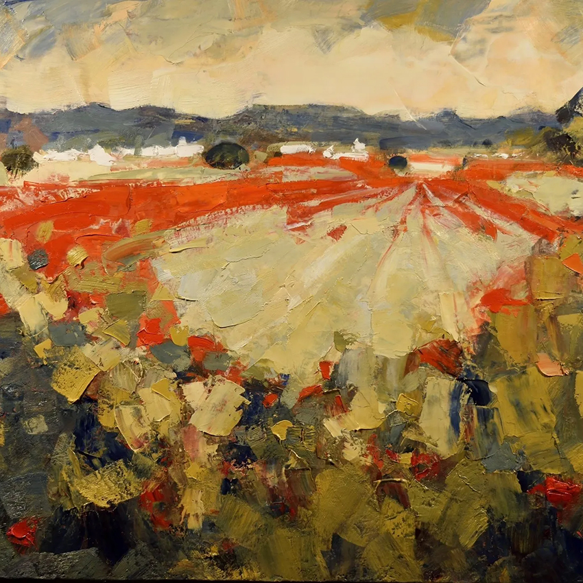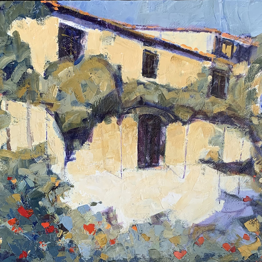 Painting in the hills and valleys of the beautiful Alentejo with the sun bleached villages . With a multitude of wild flowers covering the land into the far distance in great abundance before the scorching sun dries them to a crisp. Hebrero studied art at the prestigious Carcula de Belles Art in Madrid and then studied with the great master painter Juan Valenzuelay Chacun.