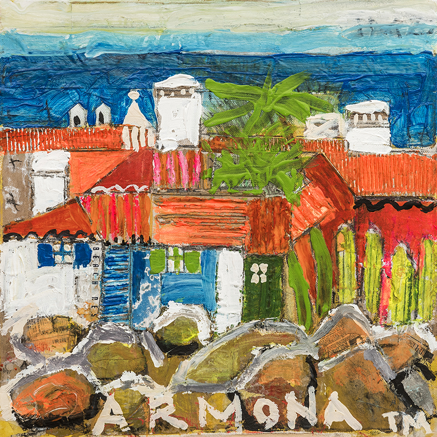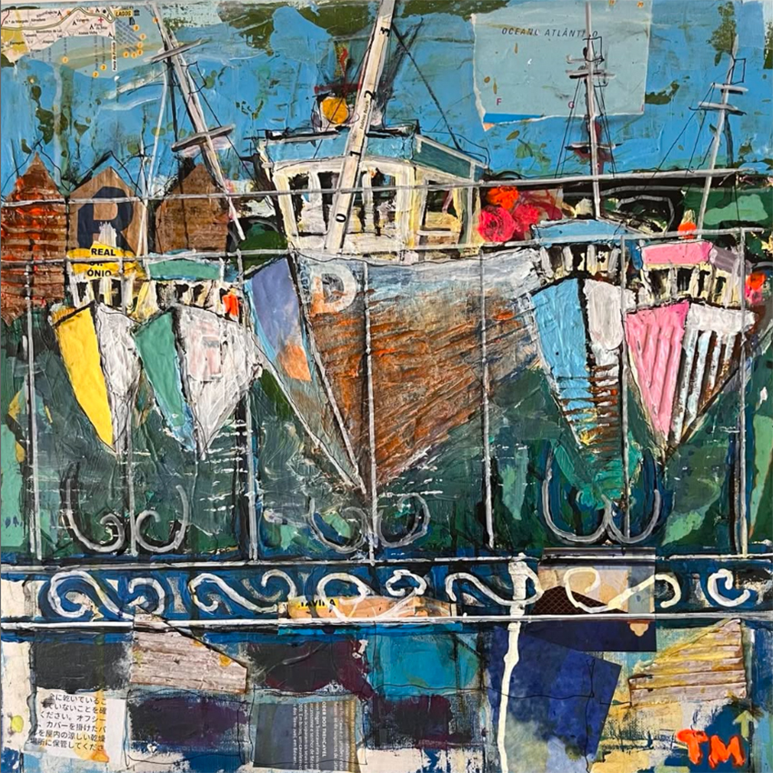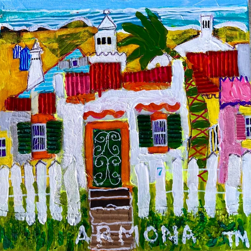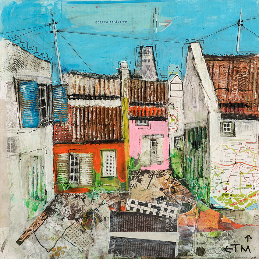 From a 3-D architectural and industrial design background ,Terry now resides in the Algarve. Creates and paints mainly working in acrylics, with layers of paint, combining found objects, creating deep textures and depths… Mutch inspiration coming from spending time on the island of Armona. Capturing its authenticity and its timeless spirit.
